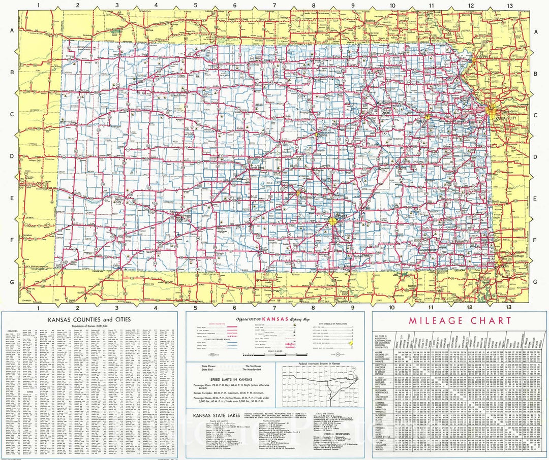 Historic Map : 1958 Official 1957 58 Kansas Highway Map : Vintage