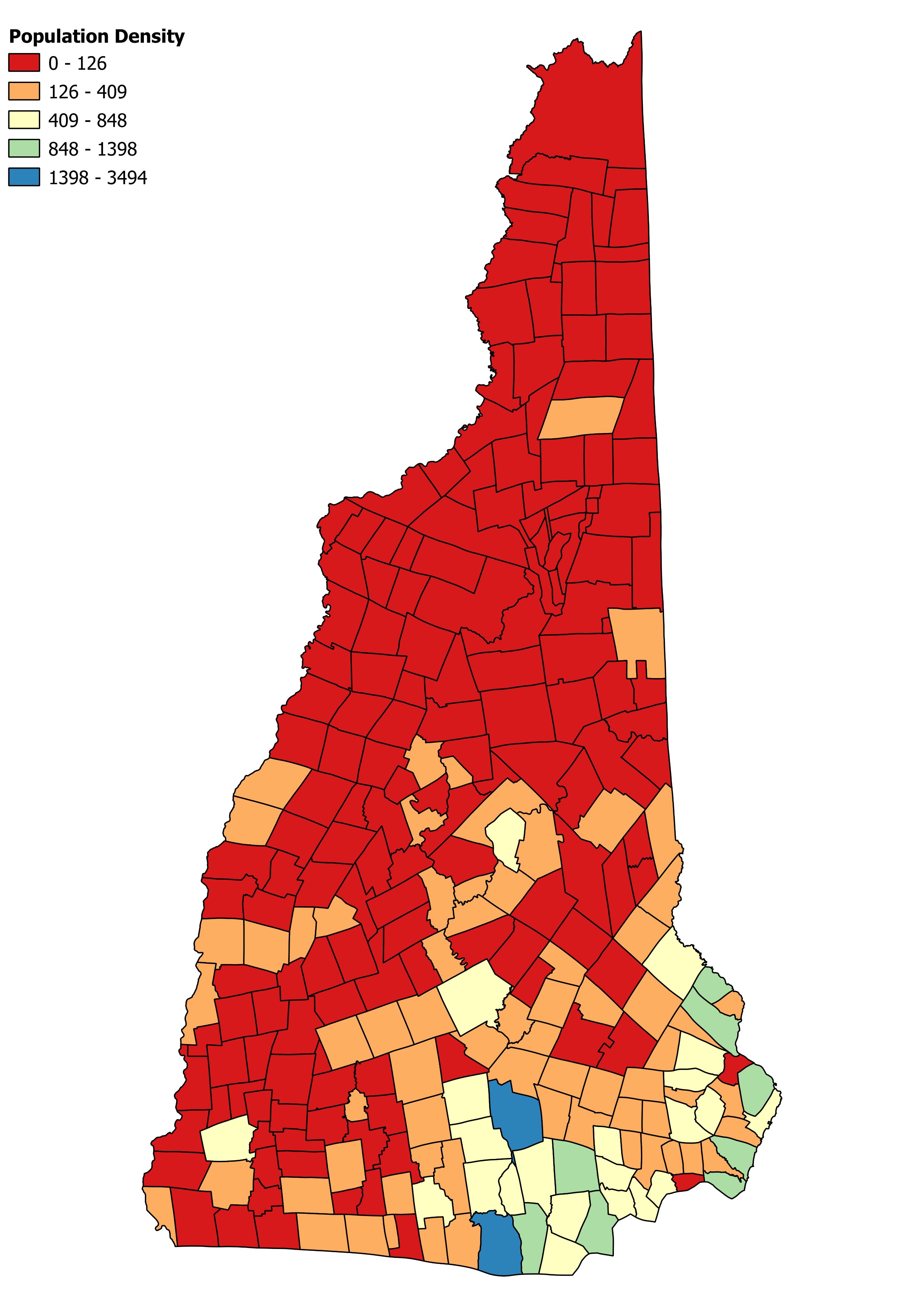 New Hampshire Population Map – Using research by Data Pandas, Newsweek created a map showcasing lists population density as one of the key variables impacting regional crime rates. On the bottom on the list, and taking the . BUT KEEP IN MIND THAT IS JUST A DRILL. NEW HAMPSHIRE’S POPULATION IS GROWING. DATA FROM THE STATE SHOWS ALL TEN COUNTIES SAW AN INCREASE BETWEEN 2020 AND 2023. NOW, OVERALL, MORE THAN 24,500 .