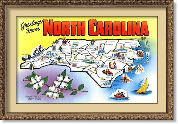 Greeting From North Carolina, 1954 Pictorial Map of North Carolina