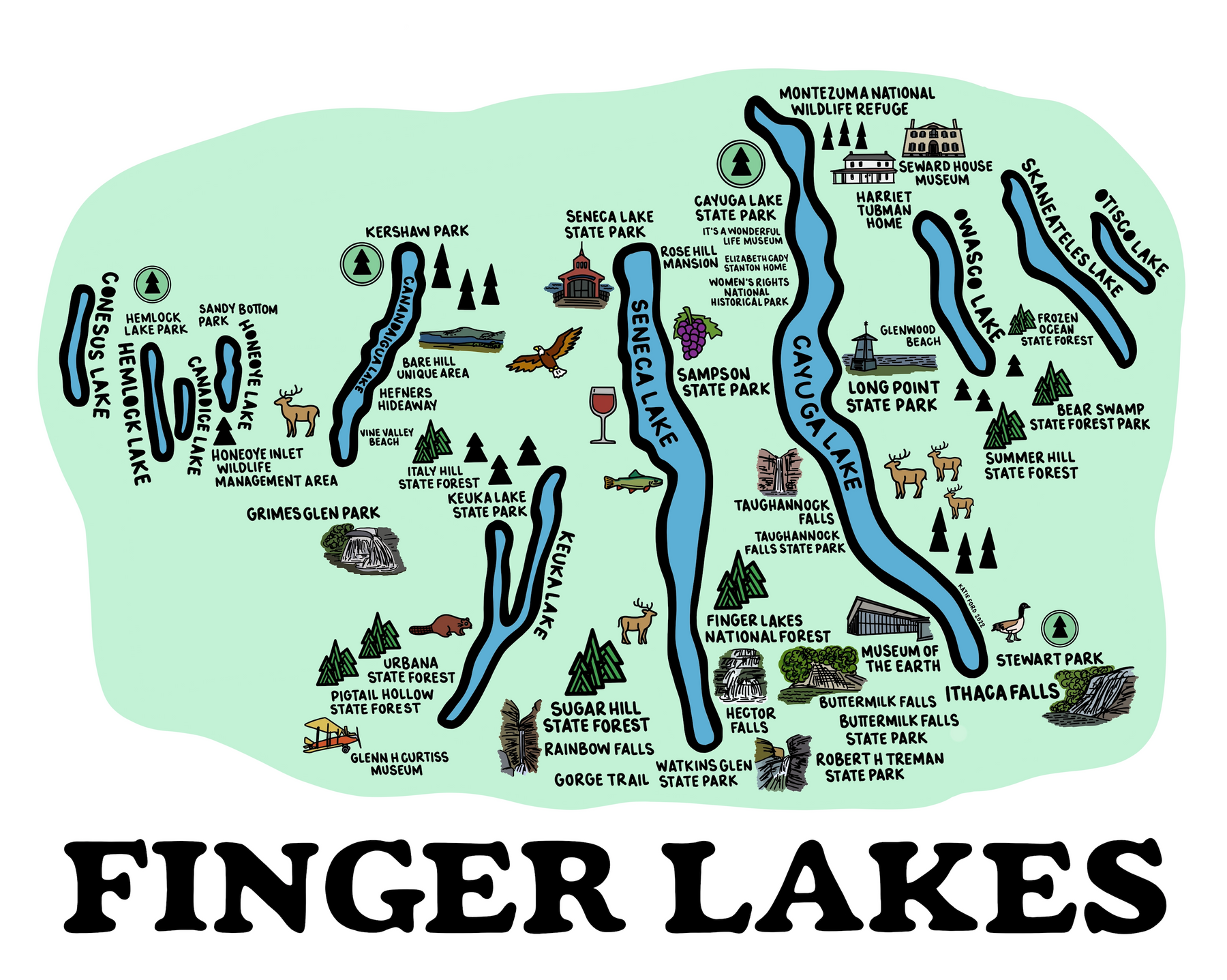 Finger Lakes of Upstate New York Map Print โ CartoCreative