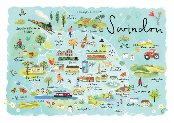 Swindon Map Illustrated Map of Swindon UK Wall Art Swindon Swindon