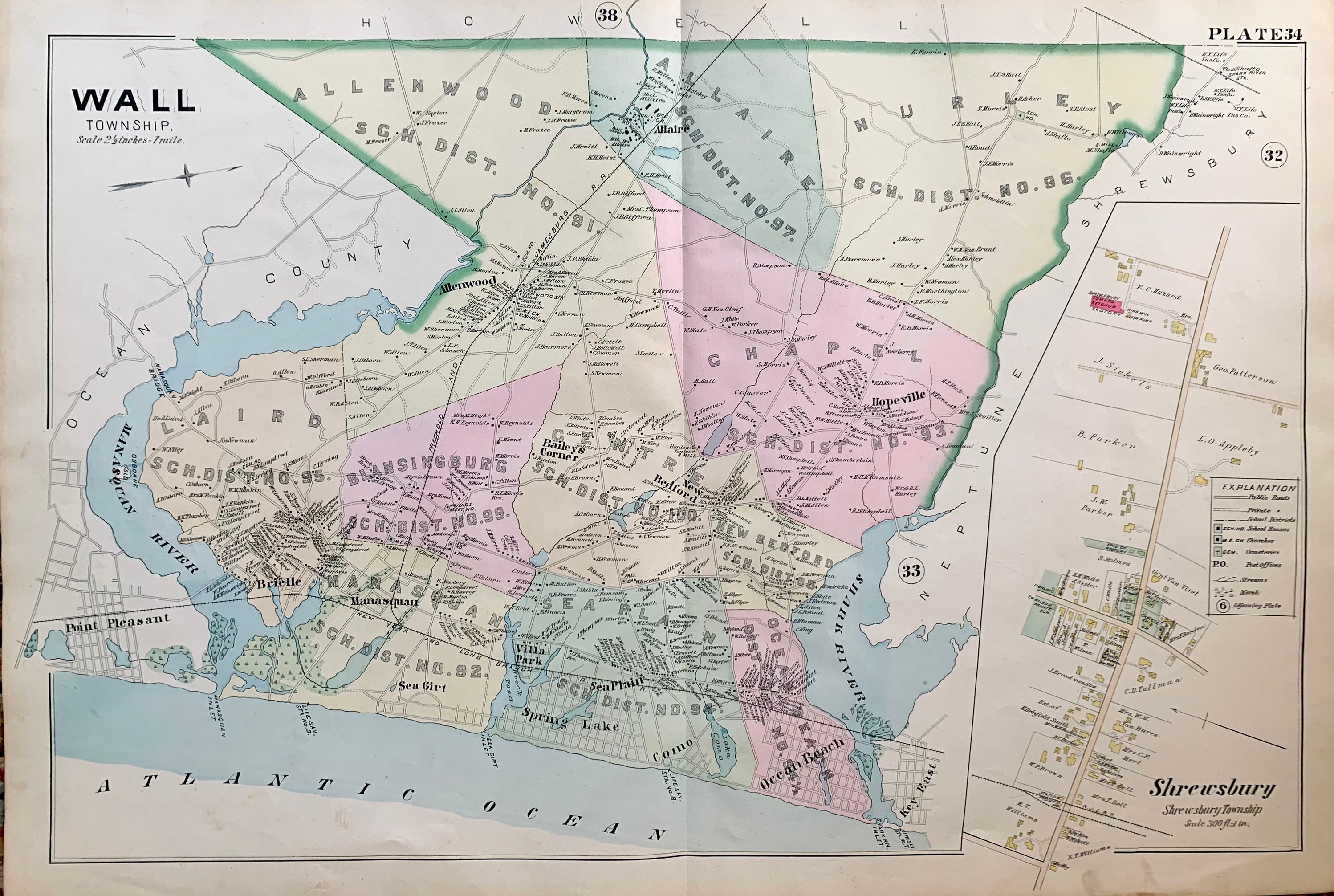 Wall Township Map, Original 1941 Monmouth County New Jersey Atlas